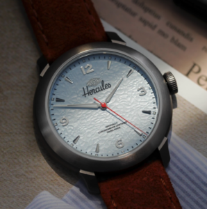….Clients may choose from a Microrotor automatic calibre (€5’995) or a (€6’495) two barrel handwound calibre, produced bespoke for Hercules by Manufacture horlogère Vallée de Joux.