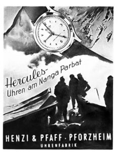The successful ascent and the worldwide attention of the expedition were marketed effectively by Henzi & Pfaff. As a result, Henzi & Pfaff equipped further expeditions with watches and thus developed the image of a reliable, robust and at the same time sporty watch.